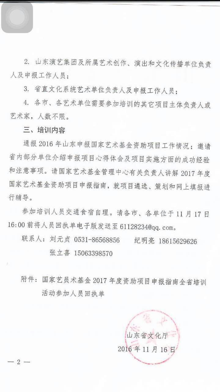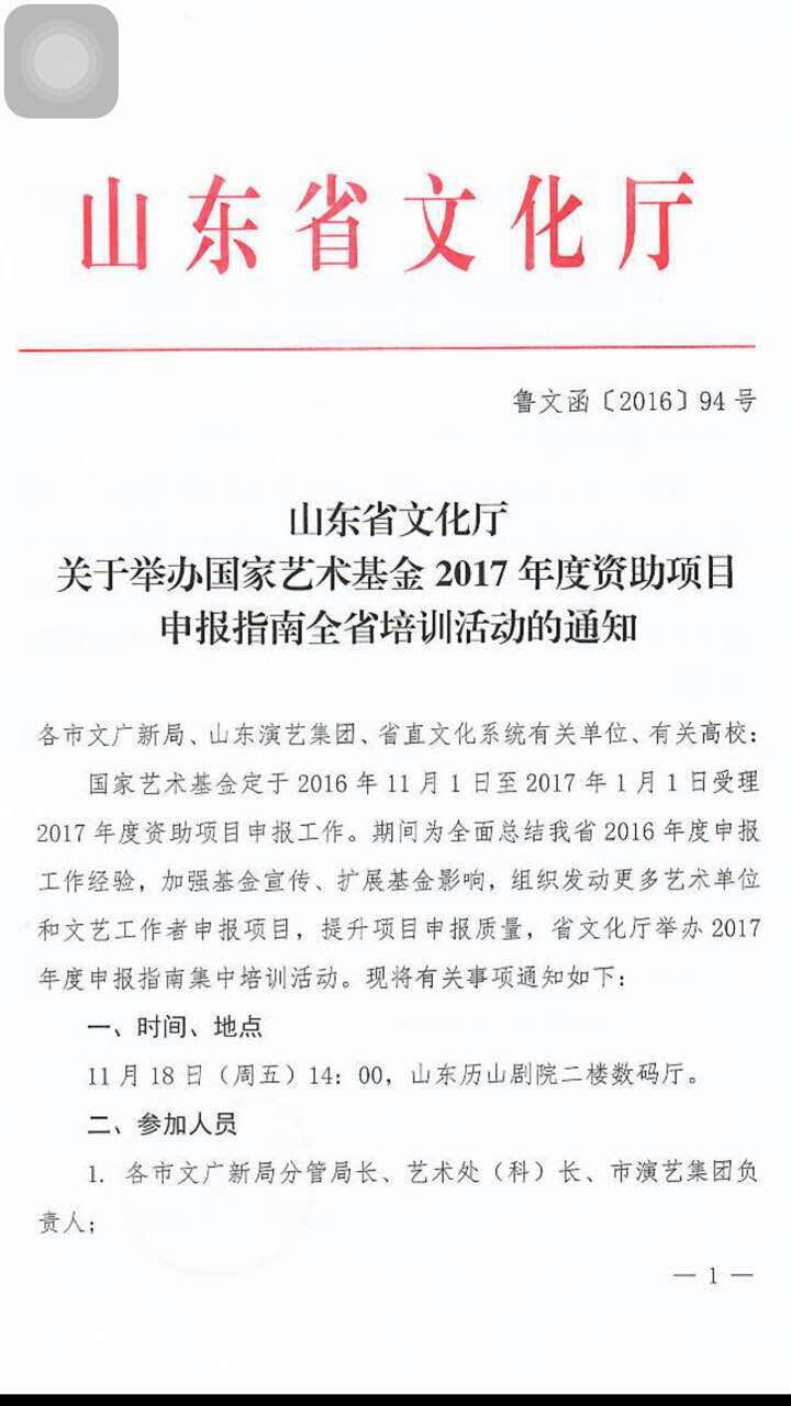山东省文化厅关于举办国家艺术基金2017年度资助项目申报指南全省培训活动的通知