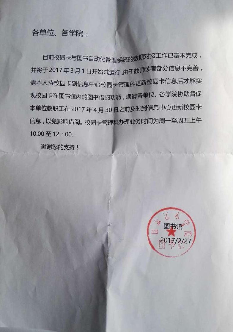 关于信息中心更新校园卡的通知