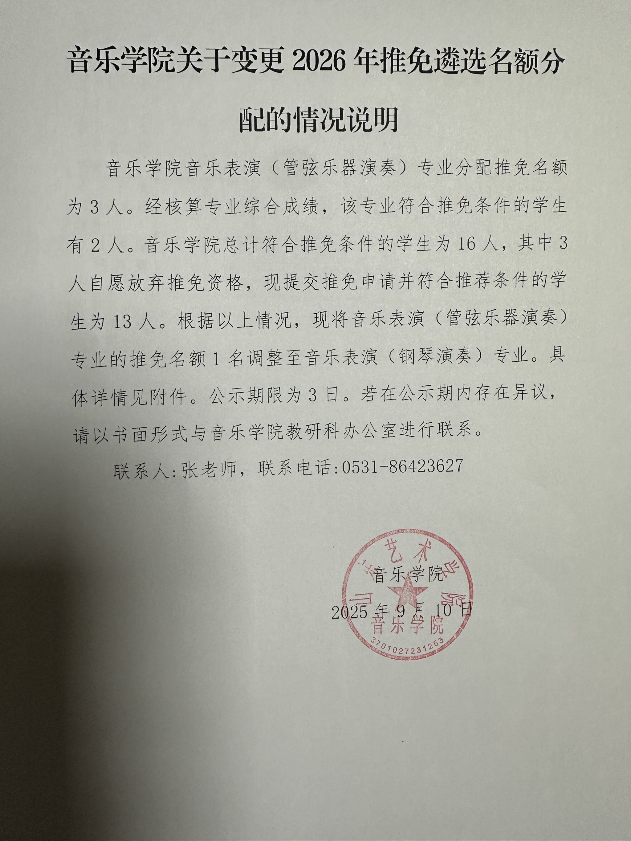beat365亚洲体育官方网站关于变更2026年推免遴选名额分配的情况说明