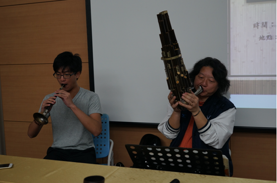 2015年12月12日上午,牟善平教授、牟楠副教授应台北和樂集的邀请,在台北采风101表演厅,举办了题为《牟氏笙演奏风格》专题讲座。此次讲座,汇集了台湾北部地区高校笙专业师生及演奏团体的人员。牟善平教授详细的讲解了山东流派特有的技巧,并现场指岛学员演奏,以便于学员更深入的了解、掌握。牟楠副教授除了技巧示范演奏,又演奏了三首山东流派代表乐曲,并对现场学员的提问进行了耐心细致的解答。