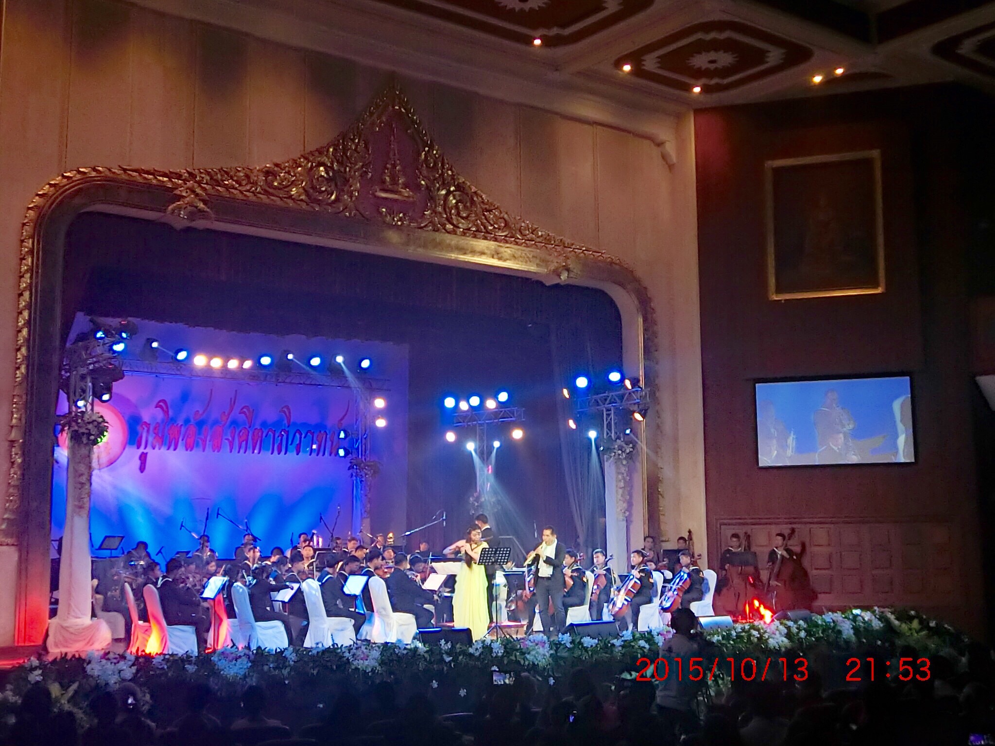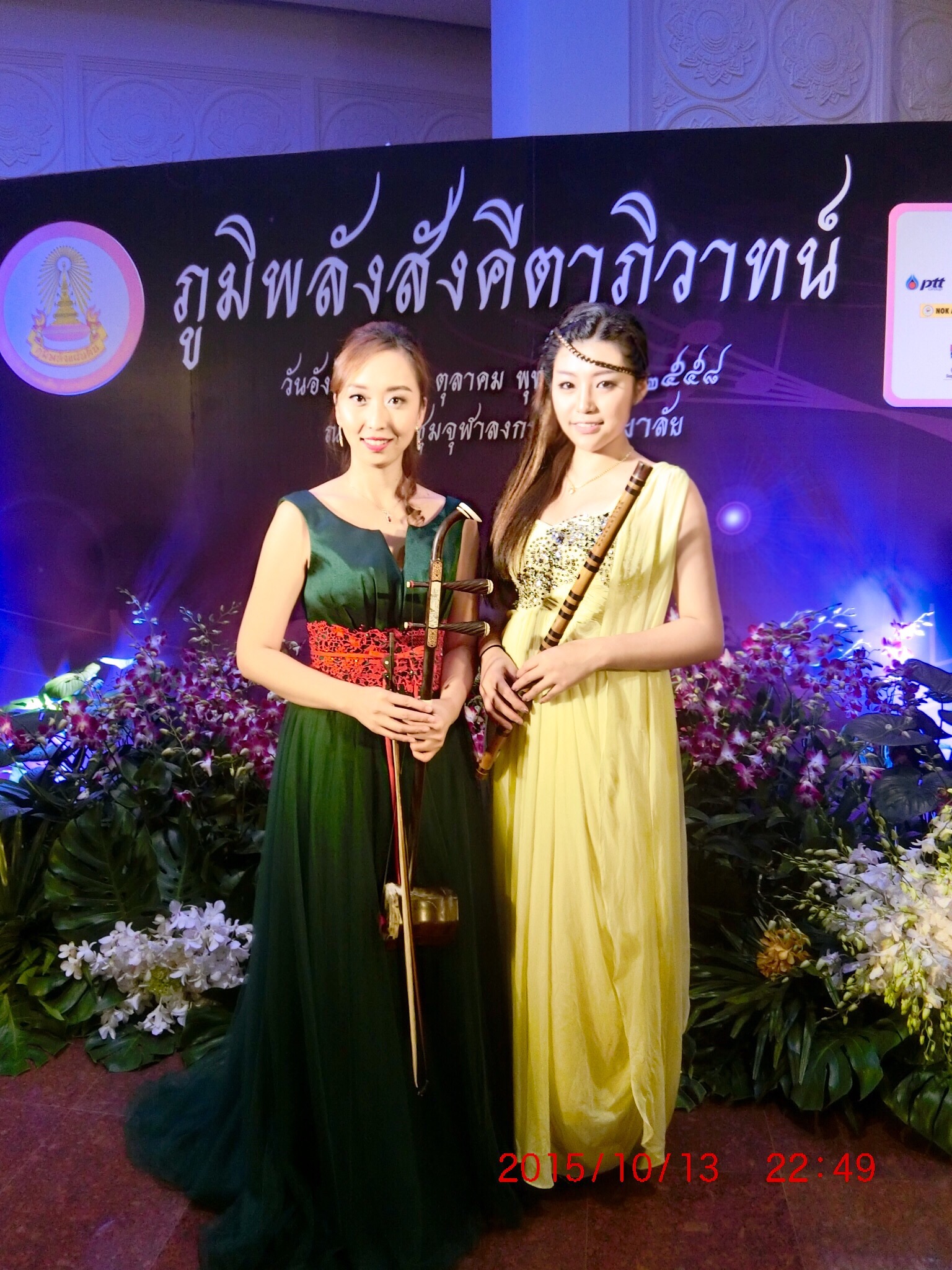 10月13日,由泰国中国文化中心与山东省联合举办的2015泰国“山东文化年”活动,经山东省文化厅与beat365亚洲体育官方网站协商,特邀公司二胡专业霍永康老师与竹笛专业二年级研究生宫媛赴泰国朱拉隆攻大学参加泰国诗琳公主60寿辰慈善音乐会的演出活动。此次演出汇集了泰国音乐届的国宝级大师,由泰国皇家海军管弦乐团担任伴奏。泰国政界、商界、中泰艺术交流中心人士及泰国皇室成员观看演出。
