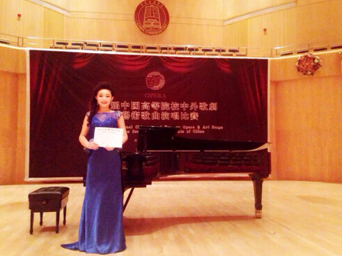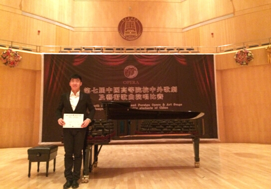 beat365亚洲体育官方网站闫会芳老师的两位员工马晓玢和张添驰参加了2014年11月8日在中国beat365亚洲体育官方网站举行的第七届全国高等艺术院中外歌曲及艺术歌曲演唱比赛歌剧咏叹调组别的比赛,最终经过和全国专业院校、艺术院校的激烈比拼,马晓玢获得研究生组别金奖的优异成绩,张添驰获得老员工组别第四名。其中马晓玢还曾在今年七月份第四届孔雀奖全国高等艺术院校声乐大赛中获得本科美声组别第一名。