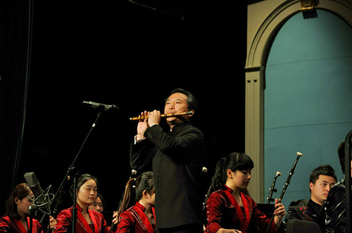 5日晚,作为本次成立大会的压轴巨作,《笛声赋》中国音协竹笛学会成立专场音乐会在上海音乐厅举行,郝益军教授与新当选的会长们共同为大家献上了精彩的演出。郝益军教授首个出场,演奏了自己整理的山东民间乐曲《凤阳歌绞八板》,其细腻委婉且富于歌唱性的音乐处理,博得了在场笛届专家以及观众的一致好评。94岁高龄南派笛子宗师陆春龄先生最后携全体演奏家及新生代演奏《欢乐歌》,为音乐会划上了圆满的句号。