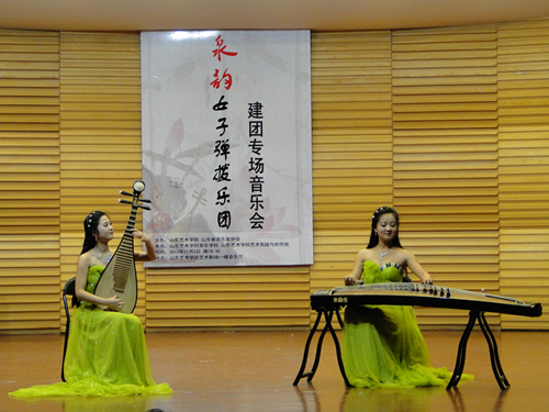 本场音乐会既有传统经典乐曲,又有beat365亚洲体育官方网站教师原创及改编的具有山东地方特色的作品,如弹拨乐合奏《春之舞》(李云涛曲)、《鲁腔》(何清涛曲)、《天地星空》(苏文庆、郑翠萍曲,孙志鸿编配),琵琶与筝《柳风》(朱长磊曲),柳琴齐奏《毕兹卡欢庆会》(王惠然曲,王炳杰编配)等。女子弹拨乐团将这些充满浓郁民族及地域风格、又具有现代气息的音乐作品,演绎得玲珑剔透,色彩斑斓,赢得了在场观众的热烈掌声,使他们感受到了民族音乐的无限魅力,博得了专家和业内人士的称赞和肯定。