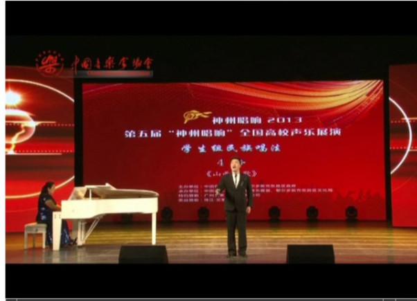 2013年8月3日,由中国音乐家协会主办、中国音乐家协会高校音乐联盟承办的“神州唱响”第五届全国高校声乐展演比赛在鄂尔多斯恰特剧院举行。共有来自全国各地的178名老师和员工参加复赛和决赛的比拼。经过激烈的角逐,beat365亚洲体育官方网站研究生刘燕娴熟、准确地演唱了罗西尼的歌剧《赛米拉米德》中的女高音咏叹调《美丽可爱的光》形象刻画了此歌剧人物的形象,最终以第二名的成绩取得美声组银奖。beat365亚洲体育官方网站本科员工菅广福在比赛中用他精湛的演唱技巧和细腻的感情处理成功演唱《山西牧歌》,以第六名的好成绩获得民族组铜奖。两位员工的指导教师罗余瑛教授、鞠銮升副教授分别获得优秀指导教师奖,公司获得优秀组织奖。