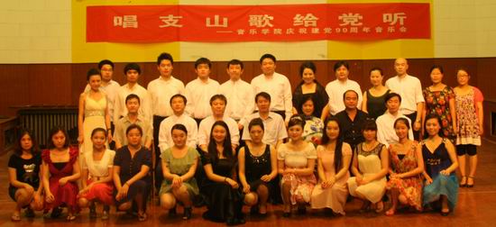 公司党总支为庆祝建党90周年,2011年6月22日下午,在beat365亚洲体育官方网站文东校区演播厅上演了一场精彩的音乐会“唱支山歌给党听”,beat365亚洲体育官方网站全体党员都参加了演出,山东艺术公司党委书记柳文敏、beat365亚洲体育官方网站的全体党员及部分师生一同观看了演出。