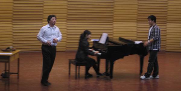通过三天的学习,听众们收获很大。首先,在声音的认识上纠正了同学们一些错误的观念,以往同学们普遍认为大而响亮的声音才是好的,于是在唱歌的时候过于用力,以致于声音的位置偏低、音高不准确。通过葛教授给不同嗓音条件的同学上课后,大家认识到不论声音大小与否,只要是自然的、科学的就是正确的。一些小嗓门的同学如能正确掌握发声方法,照样可以发出优美的声音,给听众以美的享受。其次,在歌曲的艺术处理上,葛教授生动的语言和干脆利落的手势引领着大家走进了歌曲的意境当中。再次,葛教授强调了在歌唱中语言的重要性,公司的大部分同学在语言方面都不过关,意大利语最基本的五个元音“aeiou”发音尚不准确,更不用说法语、德语了,所以他再三强调了字正腔圆对歌唱的重要性。