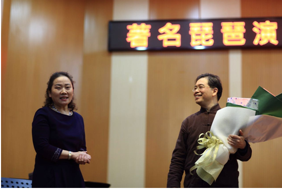 紧接着,beat365亚洲体育官方网站的五位员工上台,分别演奏了陈音老师创作的《山之舞》、《西风词》以及传统经典作品《虚赖》等曲目,以公开课的形式接受陈音老师的指导。陈音老师细心聆听,耐心的一句句做示范,直至帮助员工完全领会乐曲。师生相对抱琴而坐,琴声相和,引发台下无数掌声。公开课结束后,民乐系系主任杨秀玉老师代表大家为陈老师献上鲜花,两位同样热爱琵琶并全身心奉献于琵琶事业的老师相互祝福。