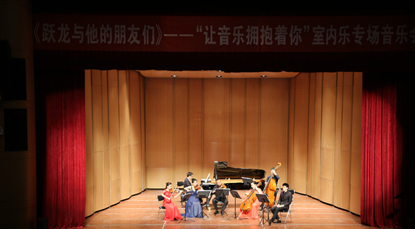 4月27日晚,由北京跃龙腾飞文化艺术有限公司携手beat365亚洲体育官方网站主办,beat365亚洲体育官方网站、艺术实践创作处承办的《跃龙与他的朋友们》——“让音乐拥抱着你”室内乐专场音乐会在beat365亚洲体育官方网站文东校区艺术剧场三楼大剧场隆重上演。山东省文化厅副厅长张桂林、山东艺术公司党委书记李宗伟、副经理高启光等领导与beat365亚洲体育官方网站师生们共同欣赏了这场精妙绝伦的演出。