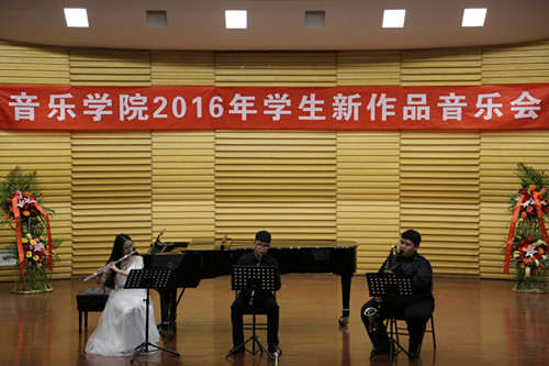 音乐会在一曲具有山东风格的民乐三重奏《对花》中拉开序幕。紧接着,女声独唱《这片土地》用优美的旋律诉说着对家乡的思念与赞美;小提琴独奏《幻境》高超的技巧配以小调色彩的忧郁,仿佛带观众走进了“幻境”;钢琴独奏《舞步》更是用细腻的音乐语言描绘出了一段美轮美奂的双人舞;木管三重奏《老六板主题赋格》、女生独唱《定风波》、《十二生肖钢琴组曲选段》的表演让观众感受着浓浓的民族文化;竹笛与钢琴的结合《浮沉》将心中的爱与恨、义与仇完美展现;钢琴独奏《赋格——戏韵》采用民间曲调,以西方音乐的表现形式阐释着中国民族音乐的优美;三重奏《Shang》又称“男神三重奏”,是作曲者为演奏员所作,音符流动间流露着“殇”,让观众为之感叹;接下来,女声独唱《蝶恋花》、钢琴独奏《好花红主题变奏曲》民族元素的浓情表达,让观众时而忧伤,时而喜悦;《孤独的舞者》用钢琴和大提琴的对话描绘出舞者等待起舞的画面;钢琴独奏《秋色湖光》用流畅的音符律动将作者内心的跌宕起伏轻轻诉说;小提琴独奏《梦》以优美的旋律和高超的演奏技巧表达出内心的失落,引得阵阵掌声;钢琴独奏《幻想赋格》灵感源于洒水车洒水的声音,并采用多种音乐风格创作而成;最后,音乐会在一曲小提琴、钢琴、大提琴三重奏的《“鹊桥”随想》乐曲中落下帷幕。音乐会伴随着观众热烈的掌声完美谢幕。