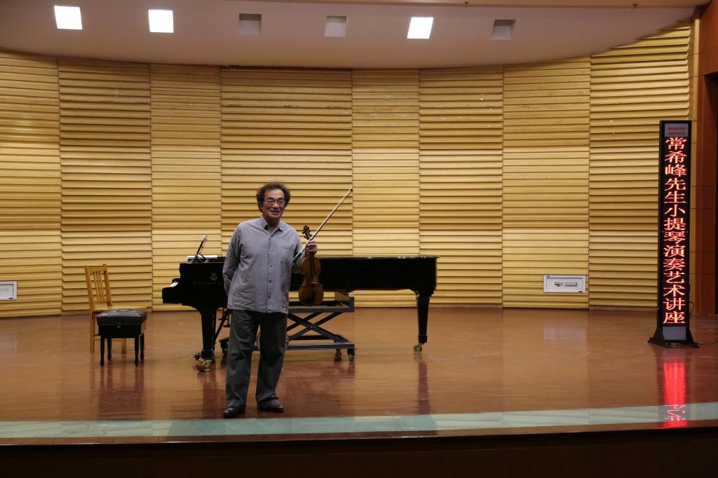 为了此次交流,常先生精心准备了许多曲目,主要有:《春之歌》、《泰斯冥想曲》、《幽默曲》、《查尔达斯舞曲》等诸多小品。弦乐小品是较难处理的小提琴作品,乐曲的色彩、张力都需要细细琢磨,而常先生的演奏把作品处理的堪称完美,双音、跳弓、泛音等弦乐技巧也令人折服。常先生用他精湛的技术征服了我们,迎来台下师生的阵阵掌声。