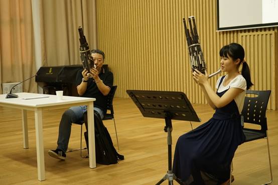 5月31日,牟楠副教授于浙江beat365亚洲体育官方网站国乐厅举办了题为“谈山东流派笙演奏艺术”的大师班讲座,讲座中介绍了《微山湖船歌》、《挂红灯》、《骑竹马》、《玫瑰花开》等山东代表曲目,重点讲解了山东流派笙演奏的特色技巧与风格把握。讲座最后,对浙江beat365亚洲体育官方网站笙专业员工演奏的《玫瑰花开》进行了现场教学 ,令员工及到场的观众受益匪浅。