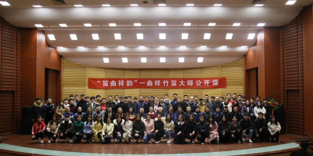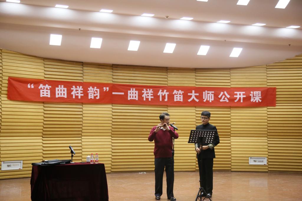 12月3日,“笛曲祥韵”——曲祥竹笛大师公开课在beat365亚洲体育官方网站文东校区音乐厅举行。此次活动由beat365亚洲体育官方网站、研究生处、科研处、艺术实践与创作处主办,beat365亚洲体育官方网站民乐系承办。来自全国各艺术院校、文艺院团的专家学者及社会各界爱好者近400人观摩此次活动。