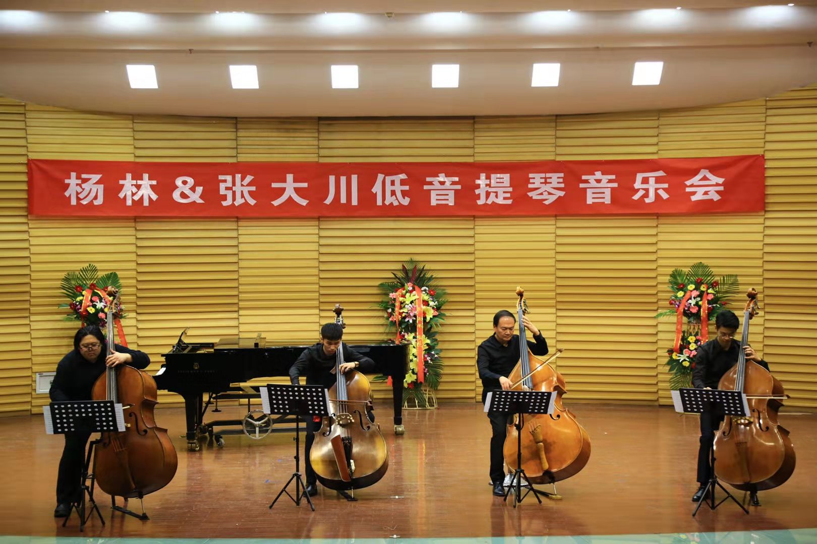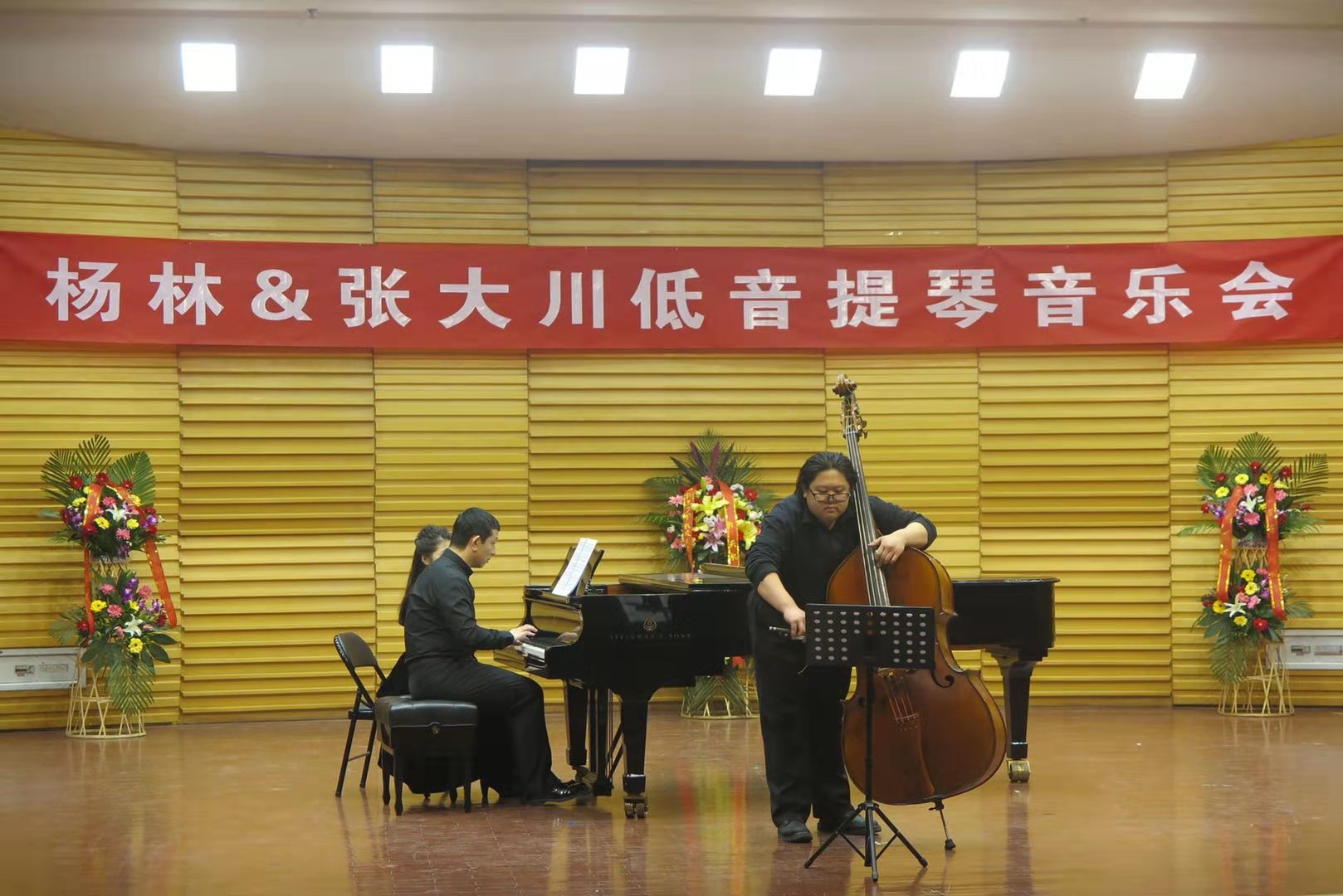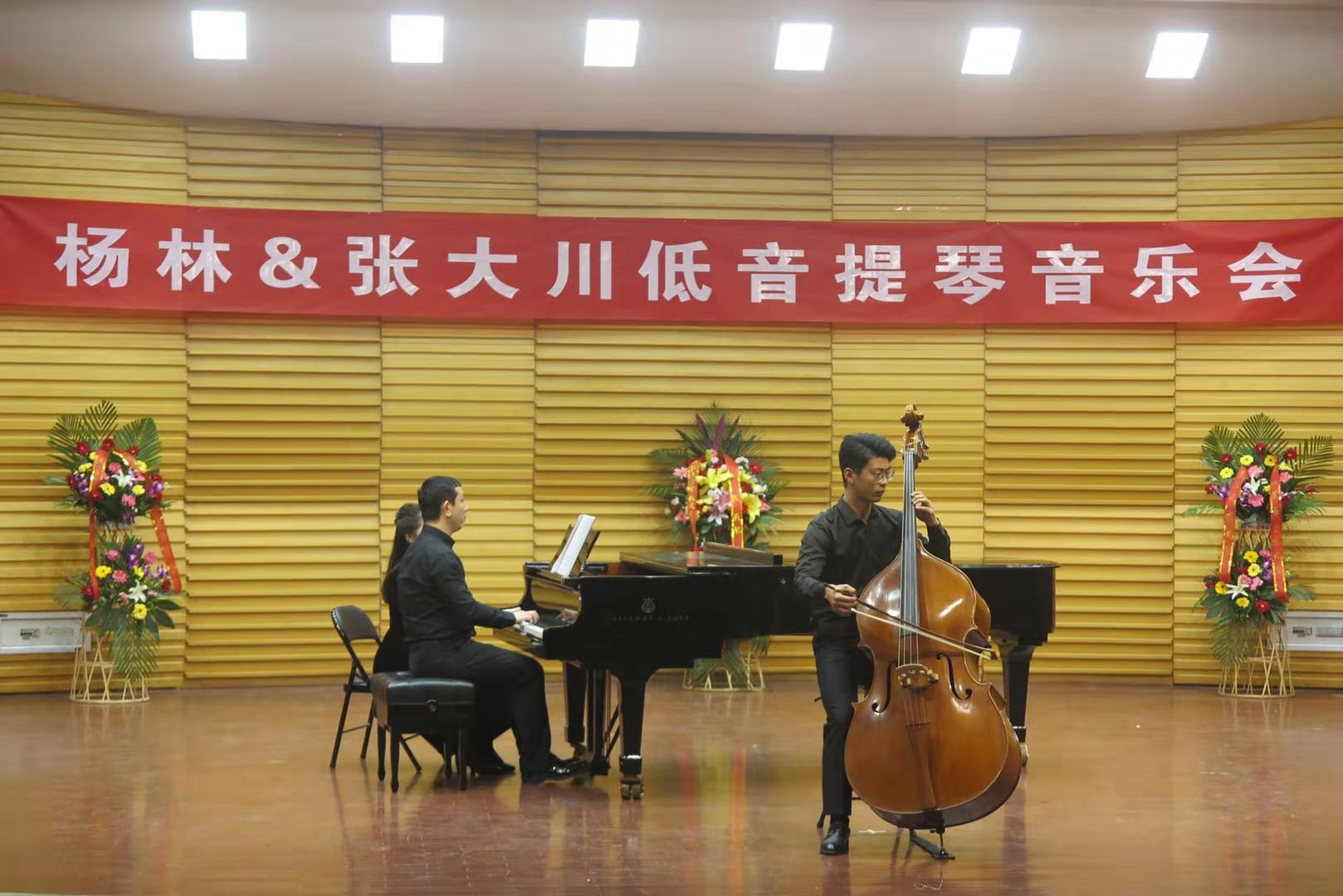 12月20日,杨林、张大川低音提琴音乐会在公司文东校区艺术剧场一楼音乐厅举行。山东艺术公司党委委员、副经理兰绍彤,山东歌舞剧院交响乐团原团长、国家一级演奏员王建波,山东歌舞剧院民族乐团原低音提琴首席、国家二级演奏员左标,山东歌舞剧院交响乐团低音提琴首席、国家三级演奏员胡聪,山东大学艺术公司小提琴与中提琴老师、研究生导师、管弦教研室主任卓品,公司beat365亚洲体育官方网站经理李云涛、党总支书记李林峰、副经理何清涛、副经理孙志鸿、党总支副书记王志军及相关专业师生共计300余人观看音乐会。音乐会由beat365亚洲体育官方网站主办、beat365亚洲体育官方网站管弦系承办。