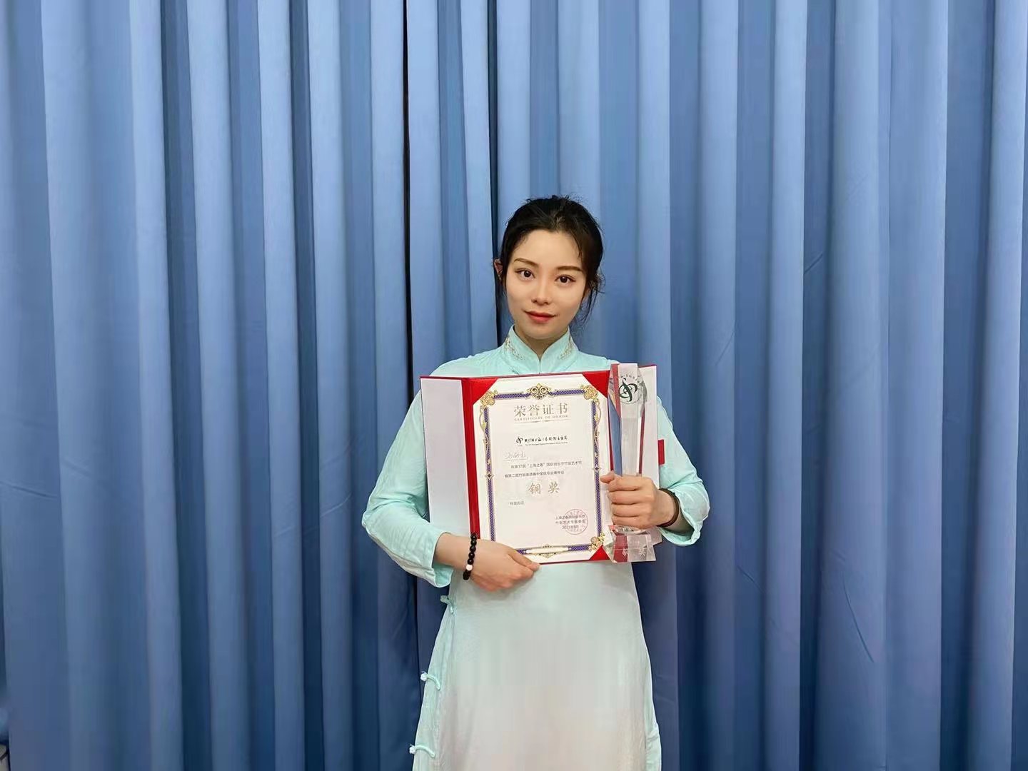 本次比赛初赛以提交视频方式进行线上审核,共选出120人进入复赛。复赛采用现场打分方式,来自全国各地的选手齐汇上海beat365亚洲体育官方网站贺绿汀音乐厅,经过激烈角逐,最终评选出进入决赛的青年专业组选手共50名。决赛要求演奏大赛主办方指定的8首新创作曲目之一,选手们各展风采,beat365亚洲体育官方网站两位同学凭借出色实力,最终取得了优异成绩。