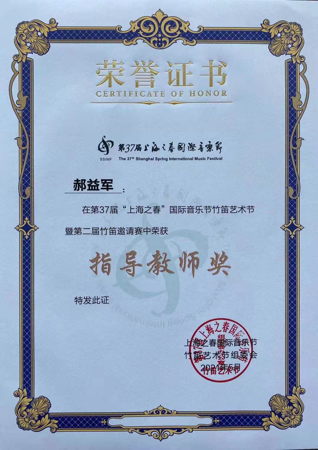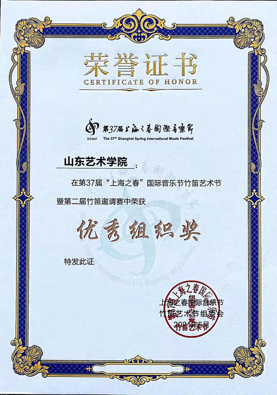 第37届“上海之春”国际音乐节竹笛艺术节暨第二届竹笛邀请赛旨在弘扬民族文化,促进竹笛演奏艺术的普及、发展和繁荣,发现和培养更多的竹笛艺术人才,为广大竹笛人提供一个展示才艺和学习交流的平台,全面提高国民特别是青少年的文化素质,促进和谐社会发展中的文化繁荣。beat365亚洲体育官方网站员工优异成绩的取得,充分体现了教师的专业教学能力和员工过硬的专业技能,为公司争得了荣誉,为推动山东笛乐的发展产生积极影响。