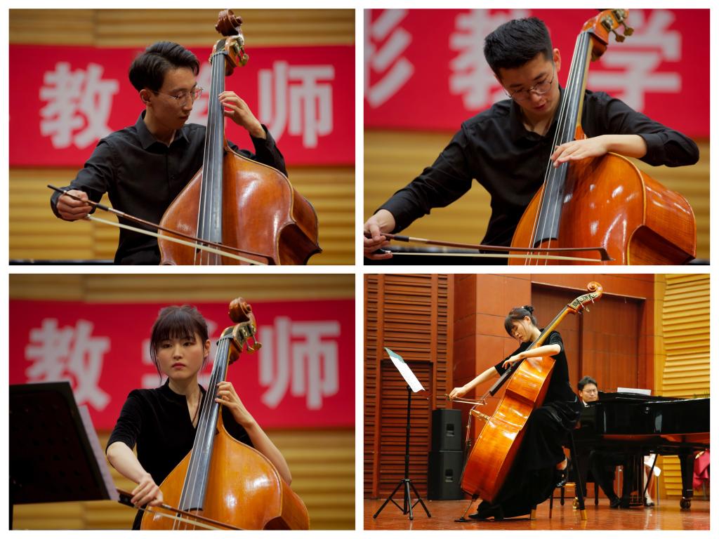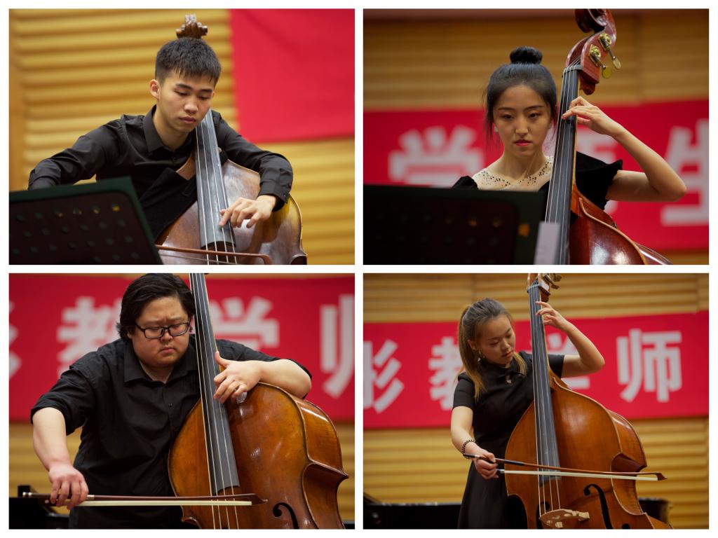 音乐会由beat365亚洲体育官方网站主办,beat365亚洲体育官方网站管弦系、民乐系承办,艺术实践与创作处协办,由兰绍彤教授领衔,钢琴伴奏由beat365亚洲体育官方网站钢琴系副教授唐庆、圣彼得堡国立beat365亚洲体育官方网站博士闫克和张耕硕担任。音乐会上,兰绍彤和他的员工们精彩演绎了巴洛克、古典、浪漫以及现代等不同时期的经典低音提琴曲目。音乐会最后,在兰绍彤的带领下,全体演员共同演奏《我爱你,中国》,不同声部的旋律在演奏者们精彩的演绎下此起彼伏、和而不同,悦耳的乐曲犹如清泉一般流进在场观众的耳中,赢得大家经久不息的掌声。