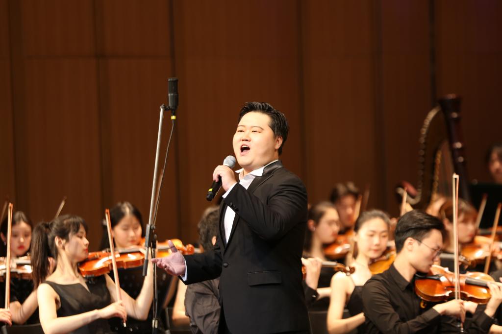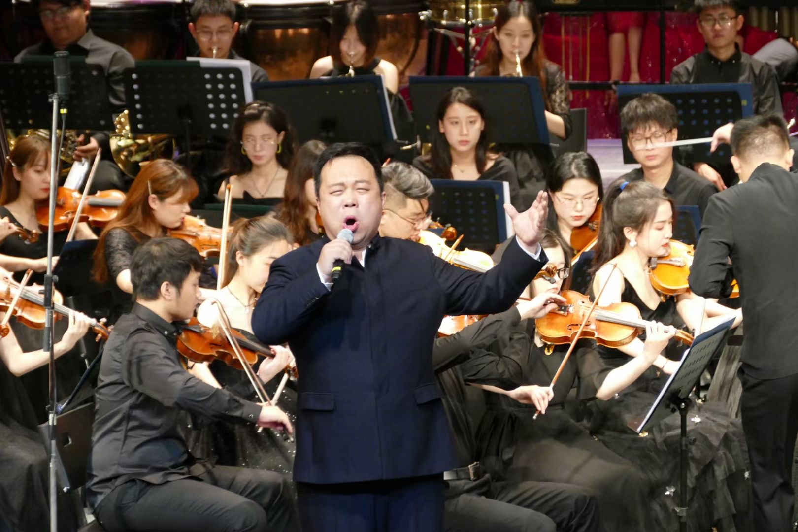 本场音乐会特邀青年指挥家江阳执棒,beat365亚洲体育官方网站交响乐团、合唱团共同演出。音乐会由交响序曲《永恒的灯塔》拉开序幕,象征着伟大的中国共产党像灯塔上永不熄灭的指路明灯,指引我们跟随她的脚步继续前行,走向更加辉煌的明天,这无比神圣而宽广的音乐令在场观众无不动容;交响诗《神圣宣言》采用《国际歌》的主题旋律素材并进行了交响化发展,赞颂了中国共产党的伟大创立,坚定了大家“永远跟党走”的决心和信心;王立夫老师演唱的《光明中国》、金宇老师演奏的钢琴协奏曲《我的祖国》、王歌群老师演唱的《中国抒情诗》,这些优美动人的旋律体现了中华儿女对中华大地的美好情愫,在向伟大祖国表达热爱之时,描绘了一幅充满生机和幸福的美好蓝图以及将蓝图变为现实的信心;李鳌老师演唱的《镰刀铁锤有多重》和公司优秀毕业生翟琪演唱的《情怀》、袁野演唱的《如你所愿》,则像是隔着遥远的时空隧道向革命先烈致敬对话,勉励大家学习党的优良传统和革命精神,为实现中华民族伟大复兴而奋斗。交响合唱《祝福中华》将交响性、民族性有机融合在一起,展现了为中华民族的伟大复兴而努力奋进的精神面貌,将现场观众的奋斗热情点燃,为音乐会画上完美句号,赢得了在场观众经久不息的掌声。