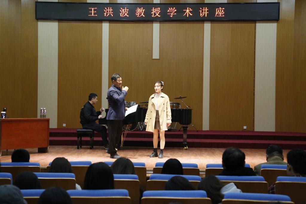 活动分为讲座和指导两部分内容进行,讲座中,王洪波教授围绕着如何获得中国声乐的好声音等问题作了详细阐述,并表述了自己的观点。他认为:歌者应该通过语言、语感、语气与观众交流,情感不饱满的演唱会导致声音平淡无味、缺乏感染力。现场教学环节中,beat365亚洲体育官方网站多名同学上台进行演唱展示,王洪波教授在夸赞的同时,给同学们指点了不足之处,王教授从建立声音的问题上出发,阐述了声音位置的重要性,以及歌唱者在舞台上的情感如何流露表现,强调情感动作方面不只于表面还要从内心出发表达最真实的一面,并从歌曲的背景出发由情感带动声音,从内涵中升华好声音。王洪波教授的讲座深入浅出、详尽具体、绘声绘色,引人入胜,让在座师生受益良多。公司员工薛恩平、吴凡、杜佩瑾、杜伟浩、吴艳妮分别演唱了《玫瑰三愿》、《黄河颂》、《你来了》、《故乡》、《帕米尔高原我的家乡多么美》等作品。王洪波教授对员工们的演唱给予了指导,并针对不同作品的内涵、特点,对员工们的演唱提出指导意见和建议:他认为音生于心,乐通于理,歌唱是一门综合艺术也是一门抽象科学,其特性是摸不着看不见的。但歌唱更是一种全深心的整身整体运动。文化、风格、习惯、背景、语言等因素都会影响自己的唱法,有共性才能更好的为个性服务。经过王洪波教授真知灼见的指导,员工们反应演唱技巧和声音起到立竿见影的效果,受益匪浅,全体师生享受了一场讲听盛宴!