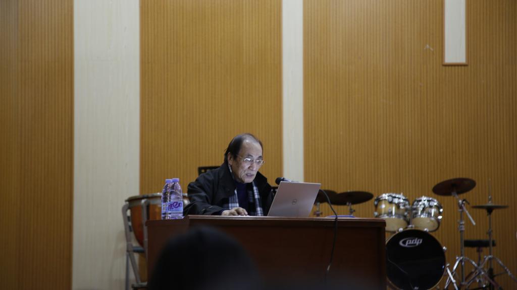 讲座中,程教授谈论了他从对秦朝历史的思考出发展开创作的二胡协奏曲《秦.思》,以及取材自民歌“黄河船夫曲”的民族管弦乐《黄河畅想》两部作品在构思、创作中的心路历程。在此基础上,程教授进一步针对这两部作品整体的曲式结构原则、序奏及主体等各部分的曲式、主题构成与发展、调式结构、旋律和各乐器组在不同音乐情绪下的表现阐释、民族音乐素材的运用等,通过对应谱例和音响,做了详细的分析与讲解,加深了师生们在写作过程中如何将“传统”与“现代”两个因素进行有机结合这一问题的理解与认识。讲座最后,程大兆教授针对民族管弦乐创作中的配器运用这一提问,从民乐队各乐器组音色特点出发,并结合竹笛协奏曲《陕北四章》等其他个人创作,进行了一定的讲解分析,指出民族管弦乐配器写作中“对比”原则的重要性。作曲系主任孙倩老师主持并做了总结:程大兆教授以两部作品为例,为师生们深入讲解了音乐创作中“传统”与“现代”的关系,讲座中针对写作中如何将个人音乐理念用音乐语言进行完美的表达,也值得我们进行深入的思考、学习与借鉴。