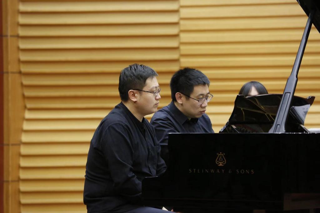 四手联弹专场由钢琴系何宁博士、张天然博士为大家共同演奏,曲目量大、曲目新颖是本场的看点之一,四手联弹对于两位演奏者来说,不仅要拥有相应的弹奏能力,还要拥有绝对的默契程度进行完美配合。而何宁博士与张天然博士两位旅德音乐家经过日复一日的练习、配合,在本场音乐会上,他们高超的演奏技术与心有灵犀的默契境界相辅相成,给观众带了一场引人入胜的视听盛宴。
