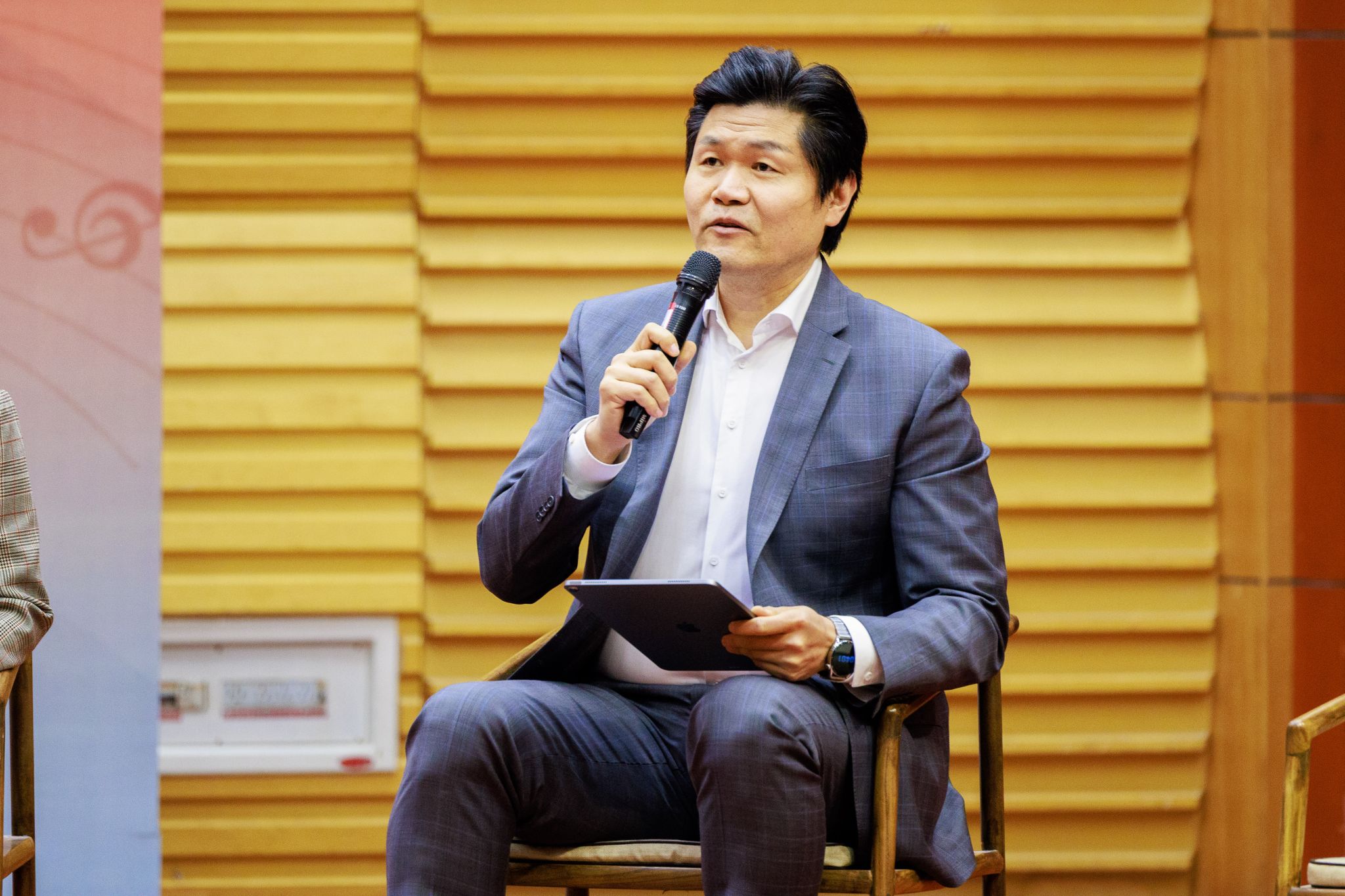 发布会上,中国民族管弦乐学会党支部书记王书伟、beat365亚洲体育官方网站经理王歌群、人民音乐出版社第二编辑部主任刘滢、作者郝益军教授进行了学术座谈交流。活动由王东涛教授主持。嘉宾们围绕新书的创作背景、编写特色及其在教学实践中的应用价值、时代意义、民乐教学发展等展开了进一步的探讨。
