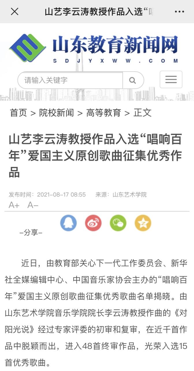 《对阳光说》入选“唱响百年”爱国主义原创歌曲征集活动作品