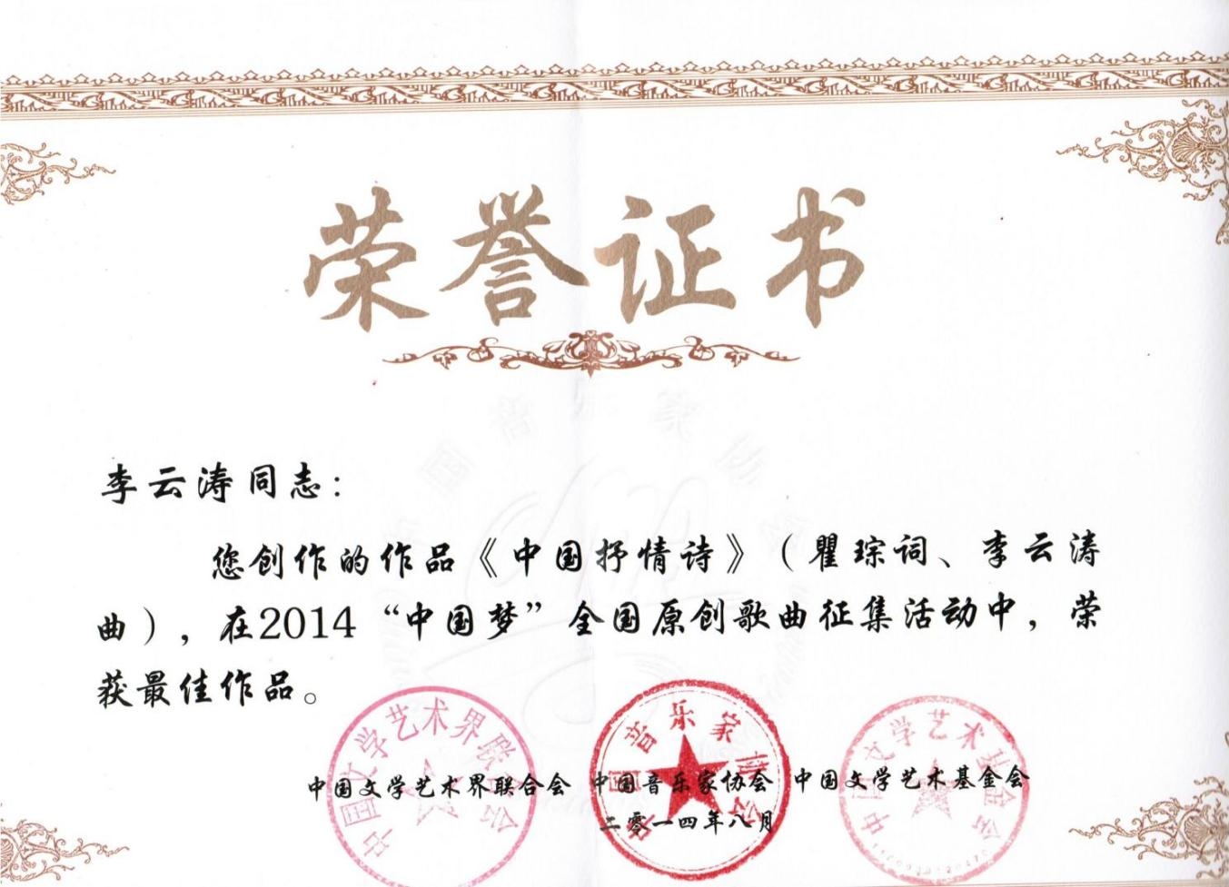 《中国抒情诗》获“中国梦”全国原创歌曲征集最佳作品奖