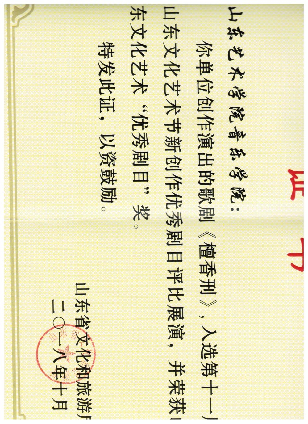 《檀香刑》获第十一届山东省文化艺术节新创作优秀剧目奖