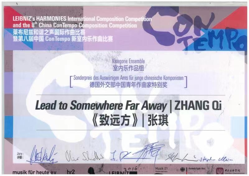 《致远方》获室内乐作品组德国外交部中国青年作曲家特别奖