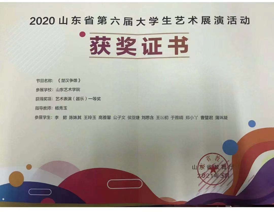 《楚汉争雄》获2020年山东省第六届老员工艺术展演艺术表演(器乐)一等奖