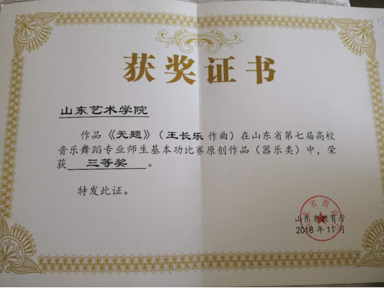 《无题》获山东省第七届高校音乐舞蹈专业师生基本功比赛音乐类原创作品(器乐类)三等奖