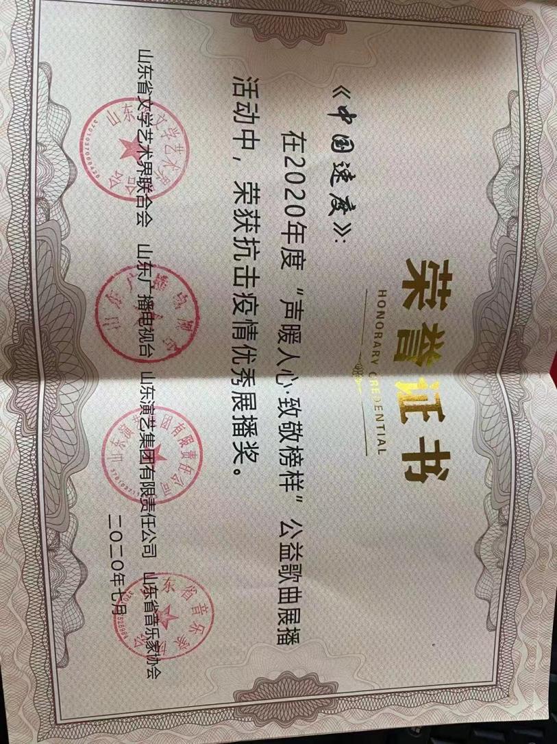 《中国速度》获2020年度“声暖人心 致敬榜样”活动优秀展播奖