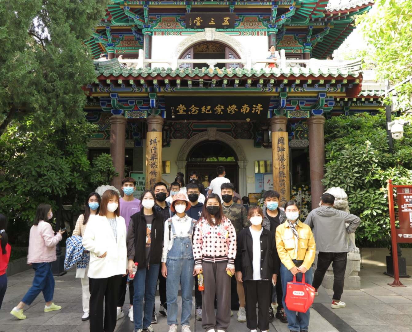 和煦的春风吹拂着济南护城河畔的翠色柳枝,纪念馆门前的警钟随着风声也在隐隐作响,仿佛在默默讲述着曾经的往事。同学们走进纪念馆,众多的史料展览和详细解说将同学们带到93年前的那个硝烟弥漫的日子。彼时,近万名同胞的鲜血染红了济南古城的河水,敌人疯狂的屠刀在觊觎着我们脚下的土地,以蔡公时为代表的外交人员用自己宝贵的生命表达了中华民族敢于反抗外来侵略、争取民族独立的决心。青年们怀着沉重的心情瞻仰了“五三”惨案中烈士们的画像,并向遇难者们鞠躬致哀,表达怀缅之情。