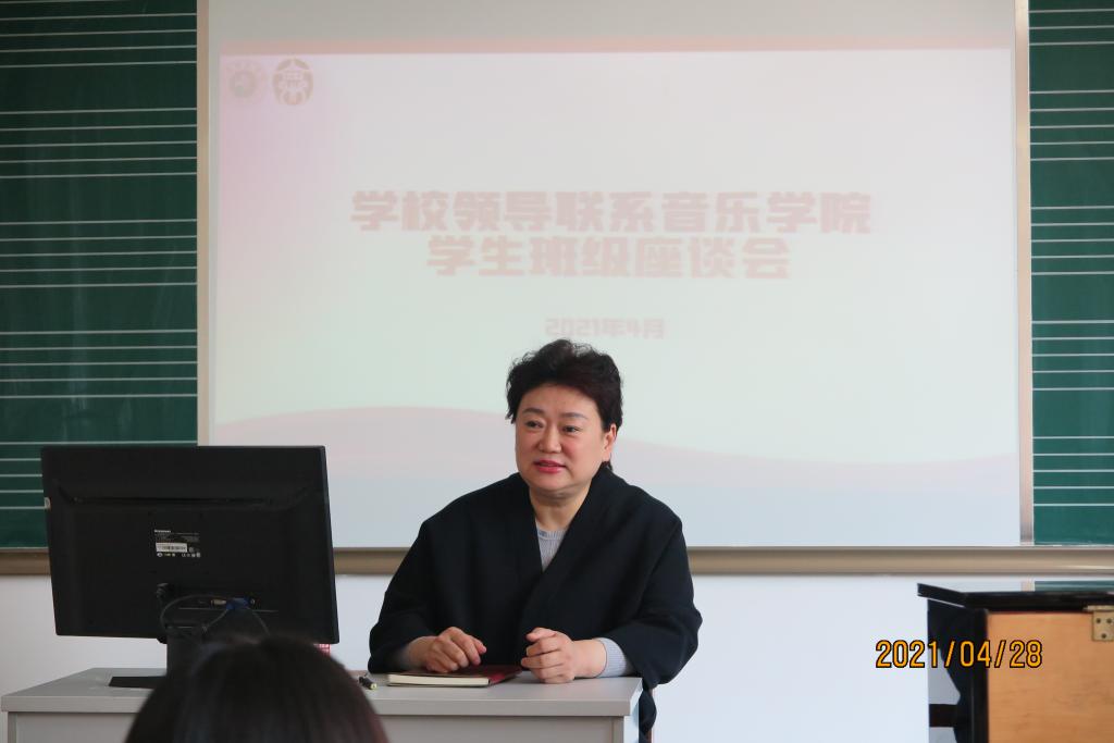 4月28日下午,按照公司《关于加强和改进领导干部深入基层联系员工工作的实施方案》要求,beat365亚洲体育官方网站副经理刘晓静来到beat365亚洲体育官方网站,同所联系的2020级音乐学专业全体同学进行座谈交流。beat365亚洲体育官方网站经理李云涛主持座谈会,党总支书记李林峰、党总支副书记王志军和团总支书记贾俊建参加座谈会。