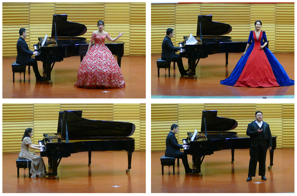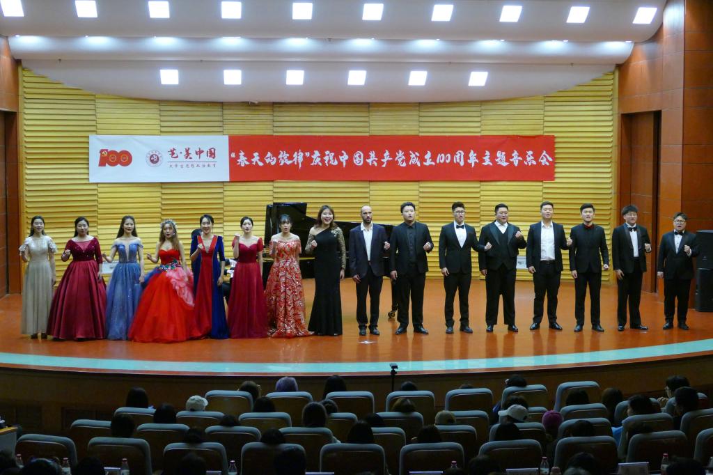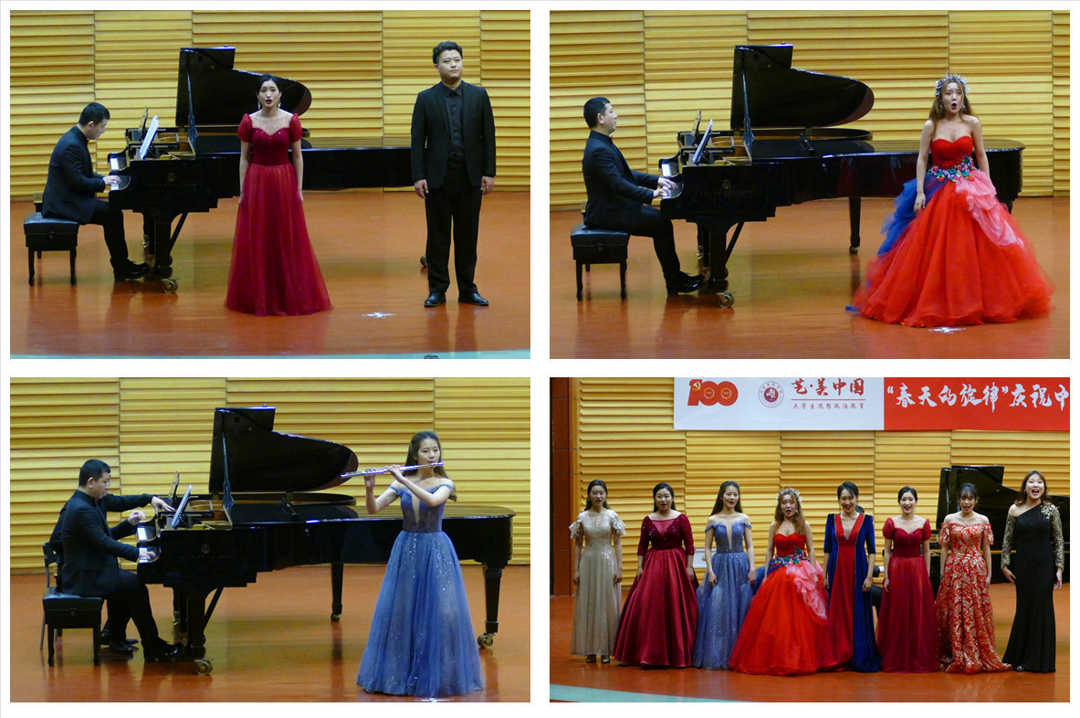 音乐会由beat365亚洲体育官方网站副教授唐庆担任艺术指导,在女声独唱《唱支山歌给党听》优美的旋律中拉开序幕,熟悉的乐曲道出了万千人民对于党的无限忠诚与热爱。钢琴独奏《山丹丹开花红艳艳》、古筝独奏《浏阳河》、钢琴协奏曲《黄河》、男声独唱《追寻》讲述了中国共产党领导中华儿女反抗侵略、争取民族独立与解放的故事,仿佛将我们带回到那段史诗般的英雄岁月。女声独唱《我爱你中国》、竹笛独奏《小放牛》、女声独唱《又见梨花》、长笛独奏《阳光灿烂照天山》描绘了中国共产党领导人民建设社会主义新中国的美好画卷。男声独唱《跟你走》《清晰的记忆》《向往》、男女声二重唱《不忘初心》表达了共产党人的崇高理想信念和对建设美好生活的向往。男女声二重唱《共筑中国梦》《灯火里的中国》唱出在中国共产党领导下,新时代人民生活的新气象,努力实现中华民族伟大复兴的不懈追求。音乐会最后,全体演员齐声合唱《到人民中去》,观众席中70名同学以快闪的方式参与合唱,真情歌颂以为人民服务为根本宗旨、以为中国人民谋幸福为奋斗目标的中国共产党。一段段经典的旋律,勾起了在场观众的美好记忆,也唤起了大家的爱党爱国爱社会主义的深厚感情,赢得观众经久不息的掌声。