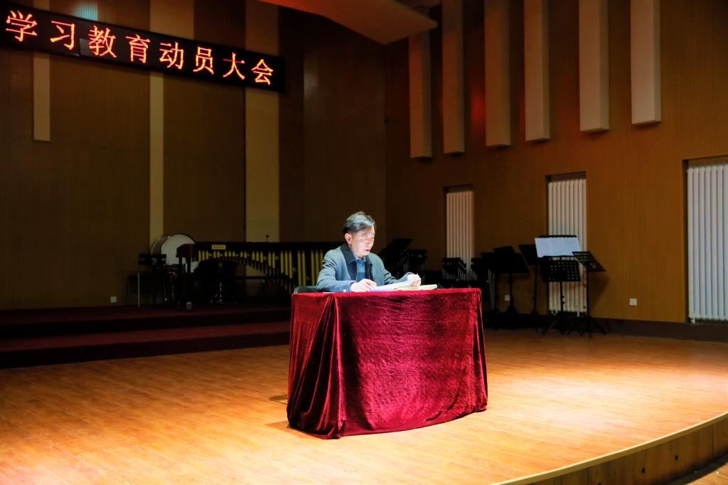 会上,李林峰传达了《山东艺术公司党史学习教育工作方案》,领学了公司党委书记王洪禹《在山东艺术公司党史学习教育动员大会上的讲话》,让大家进一步明确了本次党史学习教育的总体要求、学习内容、工作安排以及推动党史学习教育落实见效的工作措施。他讲到,开展党史学习教育,要坚持以马克思列宁主义、毛泽东思想、邓小平理论、“三个代表”重要思想、科学发展观和习近平新时代中国特色社会主义思想为指导,深入学习贯彻党的十九大和十九届二中、三中、四中、五中全会精神,紧紧围绕学懂弄通做实党的创新理论,坚持学习党史与学习新中国史、改革开放史、社会主义发展史相贯通,做到学史明理、学史增信、学史崇德、学史力行,引导广大党员、干部增强“四个意识”、坚定“四个自信”、做到“两个维护”,不断提高政治判断力、政治领悟力、政治执行力。党史学习教育要面向全体党员,以处级以上领导干部为重点,把握好教师和员工两个群体,组织开展好专题学习、专题培训、专题宣讲、专题民主生活会、组织生活会和“我为师生办实事”实践活动。在推动落实方面,务必加强组织领导,强化政治引领,把握正确方向,加强督促指导,确保党史学习教育取得实效。