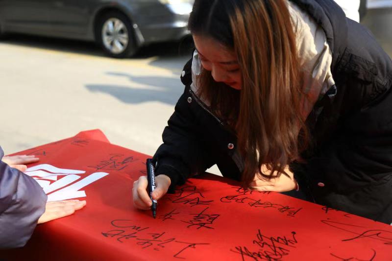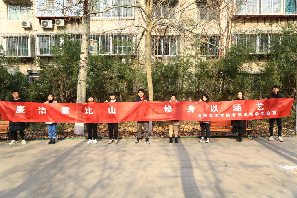 1月2日,上午在文东校区小广场举办了“廉洁重比山 修身以涵艺”主题签名会。在签名活动中,同学们积极参与其中,纷纷在横幅上郑重写下自己的名字。通过横幅上的不计其数的名字,相信诚实守信、遵纪守法、以廉为美的意识已经深入同学们心里。