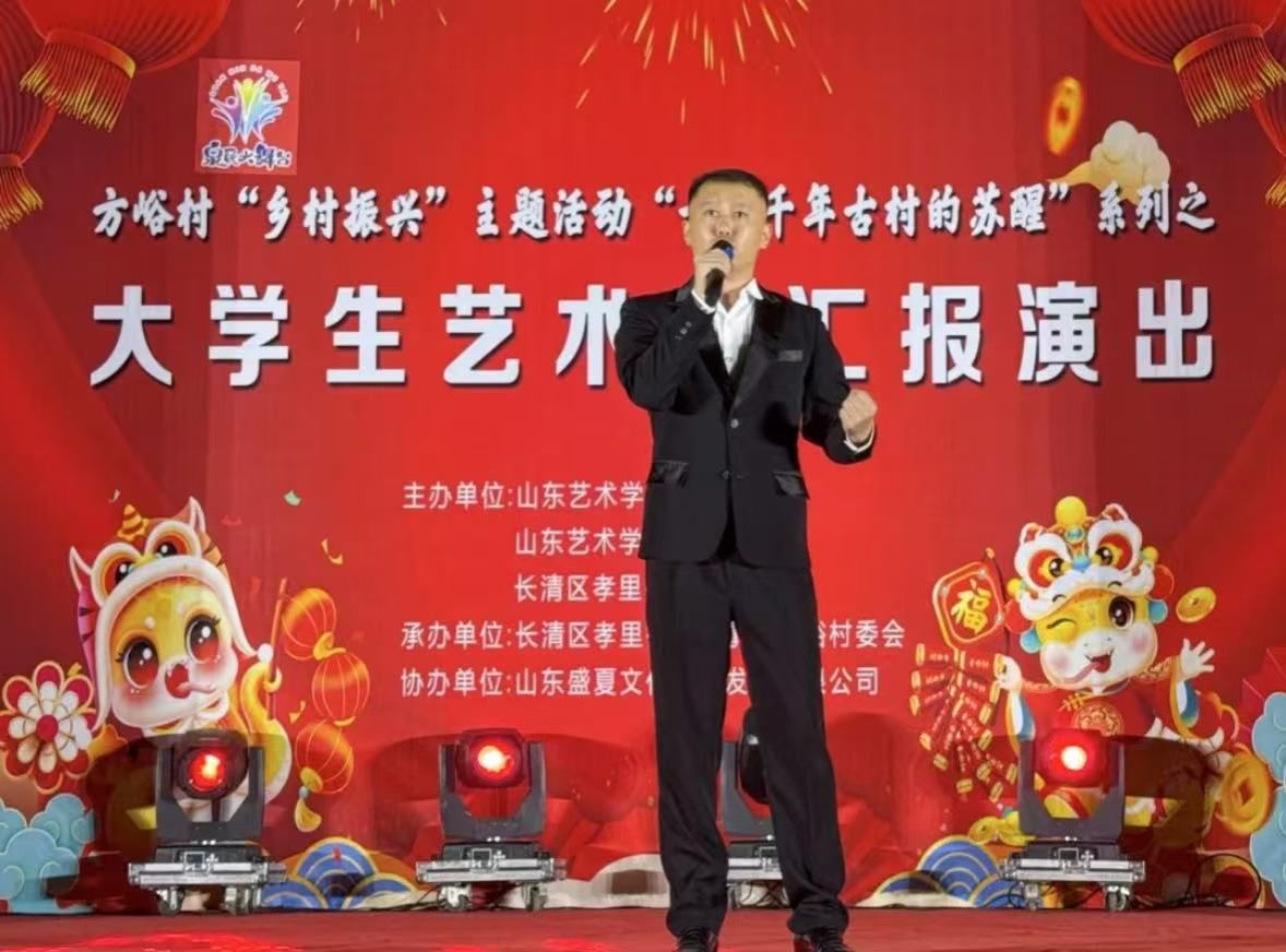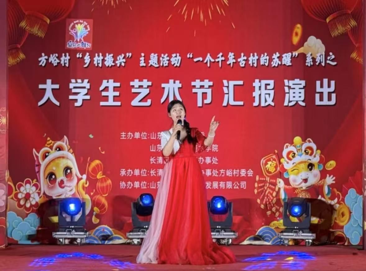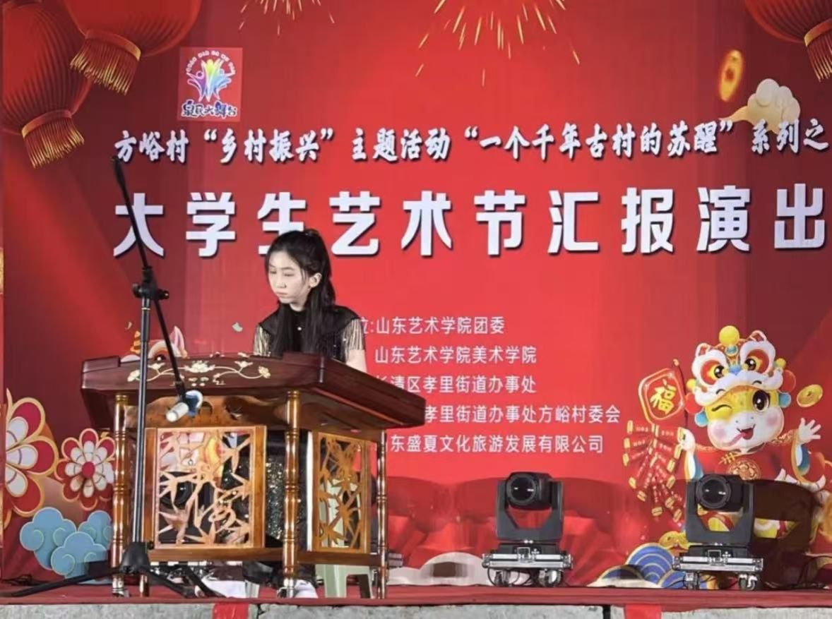 6月29日,beat365亚洲体育官方网站“音乐筑梦”社会实践团队员与beat365亚洲体育官方网站“艺启”老员工社会实践团一同走进济南市长清区孝里街道方峪古村,参加方峪村“振兴乡村”主题老员工艺术节汇报演出。活动特邀济南市长清区孝里街道党工委副书记、办事处主任焦玉燕,山东省作家协会会员、长清区文联三级调研员赵士东及长清区相关部门代表参加。华灯初上,汇报演出在热烈的掌声中拉开序幕,朗诵、舞蹈、戏曲等节目精彩纷呈,歌声舞影交织于璀璨舞台之上。
